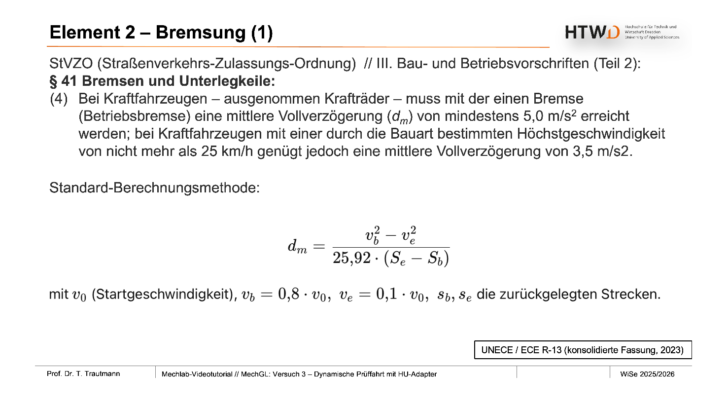 - Berechnung der mittleren Vollverzögerungen gemäß UNECE / ECE R-13