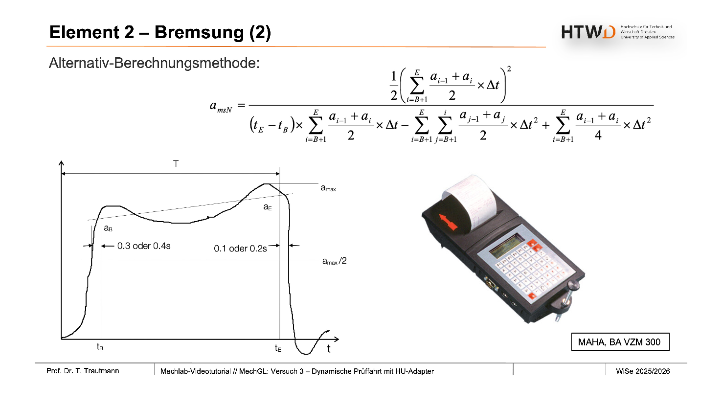 Bild 2: Berechnung der mittleren Vollverzögerungen nach MAHA-Berechnungsvorschrift.